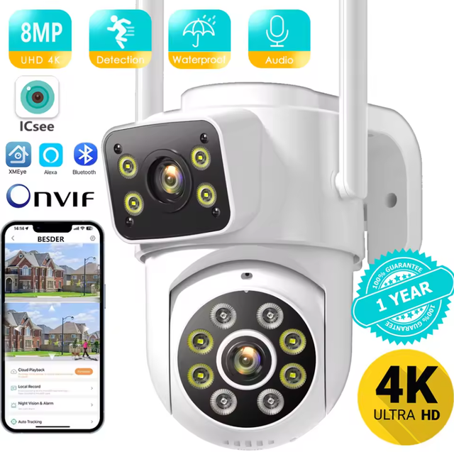 Wi-Fi IP камера відеоспостереження 8MP Dual Lens iCSee – Full HD 4K з автостеженням, двостороннім зв’язком та нічним баченням